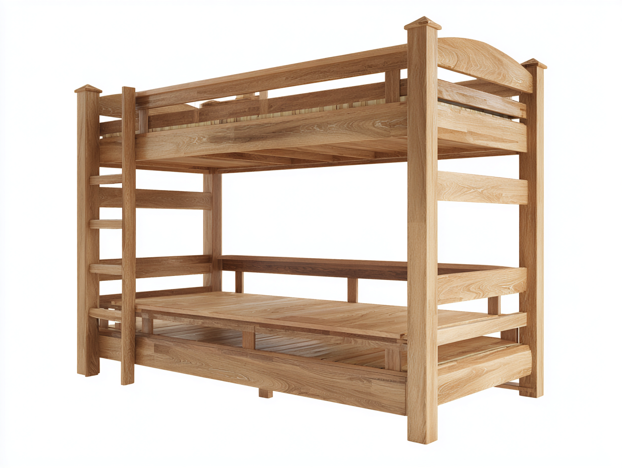 Estas literas de madera maciza ofrecen una solución práctica y resistente para dormitorios compartidos. Su diseño clásico permite aprovechar el espacio vertical manteniendo un estilo cálido y natural.