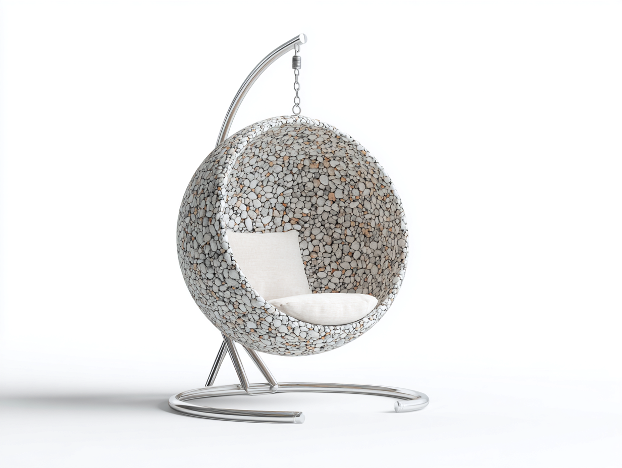 Este sillón colgante de jardín combina un diseño contemporáneo con una forma envolvente que invita al descanso. Es una opción ideal para terrazas y espacios exteriores donde se busca confort y estilo.